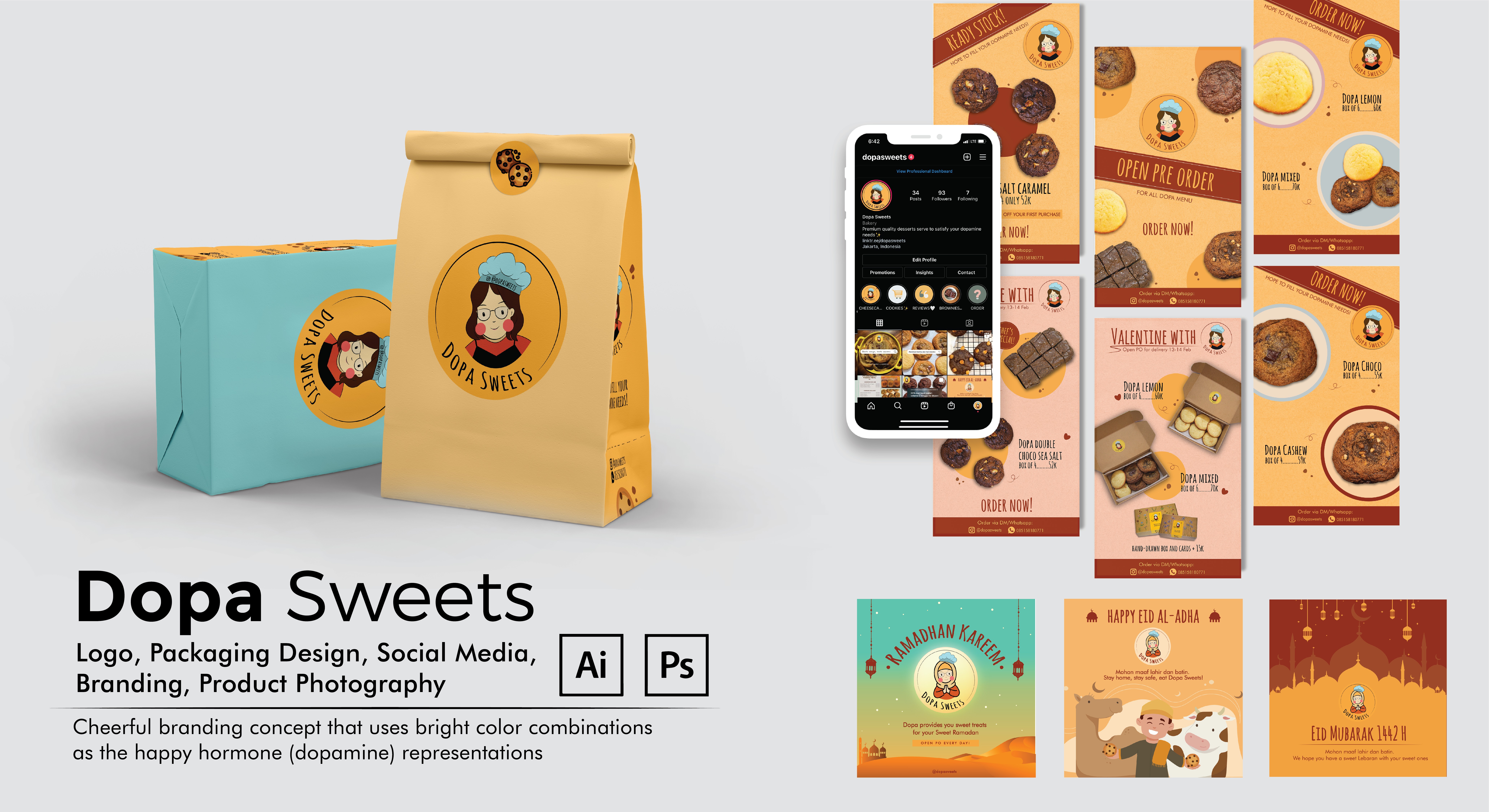 Designed packaging and social media content to communicate brand identity and engage target audiences across platforms.